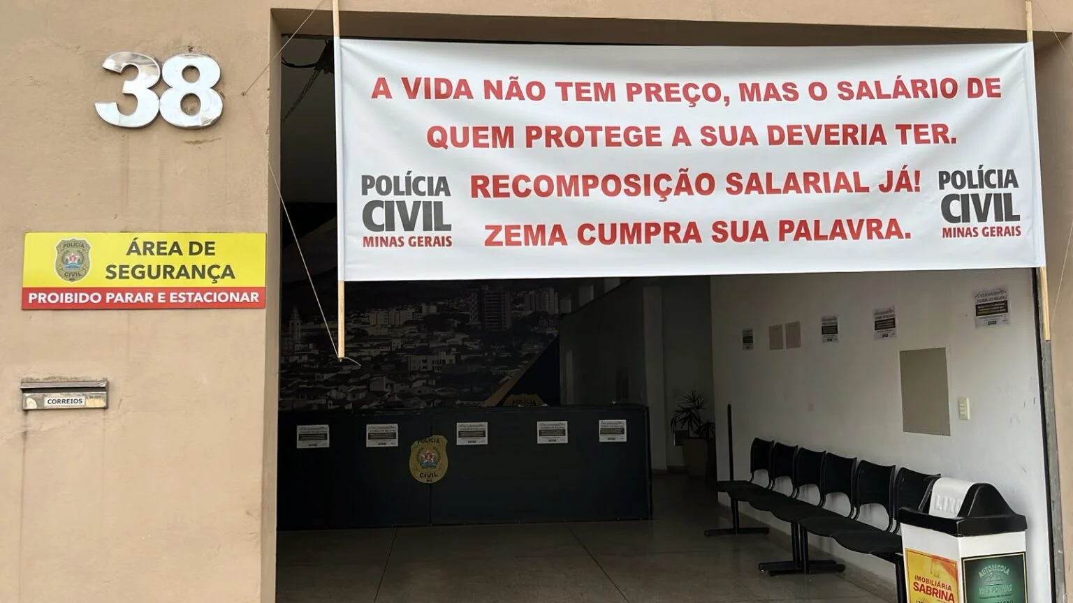 As policias Civil, Militar e Penal e o Corpo de Bombeiros, cobram do Governo de Minas Gerais, uma recomposição salarial de 41,6% para a categoria. Os profissionais da segurança pública querem que o governador Romeu Zema pague a recomposição das perdas inflacionárias, que já chegam a 41,6%. Porém, o Governo oferece um reajuste geral, para todos os servidores, de 3,62%, sendo aplicado de forma retroativa a janeiro deste ano. O percentual é menor do que a inflação oficial de 2023, de 4,62%. Os servidores afirmam que existe um acumulado dos últimos sete anos, sem o governo pagar a recomposição. Meio aos protestos, a Assembleia Legislativa de Minas Gerais (ALMG) aprovou este projeto em 1º turno nesta quarta-feira (29). No entanto, o PL 2.309/24 ainda seguirá em votação no Plenário na próxima semana, porque as mais de 50 emendas apresentadas ao texto não foram analisadas por falta de quórum. No geral, elas autorizam o aumento do índice oferecido pelo governador Romeu Zema (Novo) – uma das emendas propõe reajuste de 10,67% para todas as categorias. Insatisfeitos com a negativa do Governo em atender o pedido de recomposição de perdas inflacionárias, policiais civis adotaram o regime de “estrita legalidade” em todas as delegacias do Estado por tempo indeterminado. Uma faixa foi colocada na porta principal da Delegacia em Três Pontas, demonstração a insatisfação dos servidores (foto). (Correio Trespontano / Equipe Positiva).
