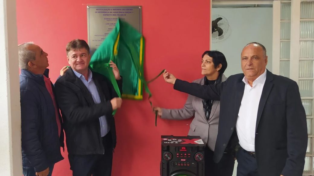 Foi reinaugurado nesta segunda-feira (1o), o Centro de Referência de Assistência Social – CRAS I. Denominado Casa da Família, ele foi inagurado há 20 anos, em 2024, pela ex-prefeita Adriene Barbosa de Faria Andrade, com o nome de Expedido Reis Frankilin. Agora o local foi reformado e ampliado, trazendo na placa inaugural o nome de personalidades que já se foram, mas que fizeram um grande trabalho na Educação de Três Pontas. Além da ex-prefeita Adriene, como a primeira mulher a governar a cidade, o então presidente da Câmara, vereador Mário Fernandes de Carvalho e Leila Maria Vila de Brito e Brito, secretária municipal de Assistência Social na época. A administração do prefeito Marcelo Chaves Garcia investiu o montante de R$68.962,14 com recursos próprios para a melhoria no imóvel, sendo a obra realizada pela Construtora Mineira Brasil Ltda. Foram criadas novas salas de atendimentos, reforma na sala do Serviço de Convivência, instalação de ar-condicionado, nova pintura e telhado na área externa de entrada, dando mais conforto aos usuários e servidores da Secretaria de Desenvolvimento Social e Habitação. Descerrando a placa o vereador Roberto Cardoso, o vice-prefeito Luisinho, a secretária de Desenvolvimento Social Maria Aparecida Chaves Garcia, e o prefeito Marcelo Chaves. (Correio Trespontano / Equipe Positiva).