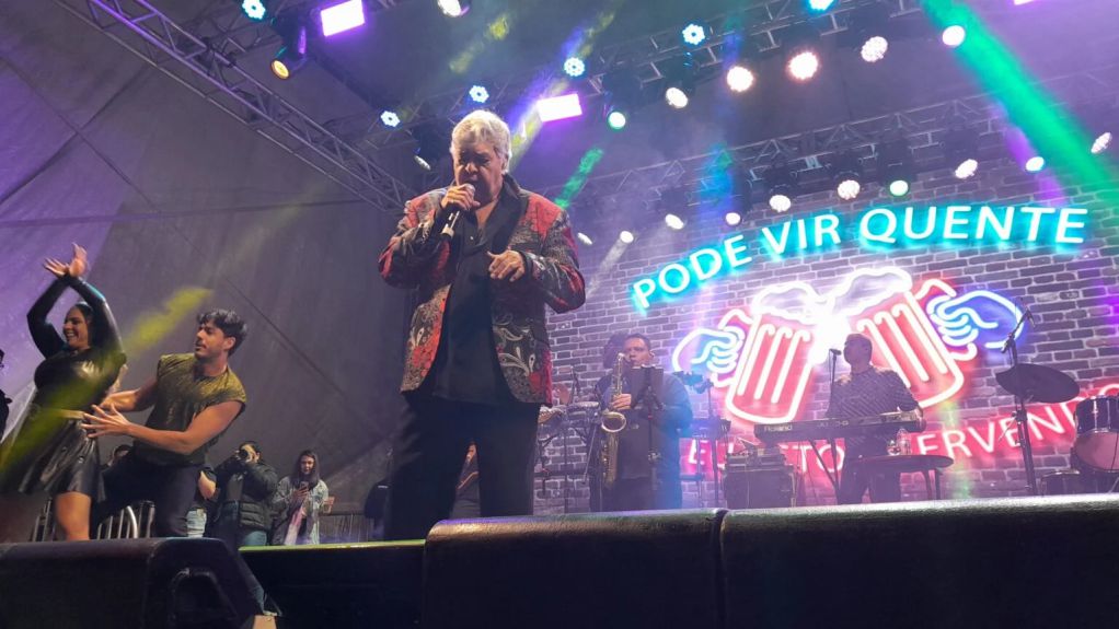 A Praça Cônego Vcitor ficou lotada para assistir ao show de Sidney Magal. Na entrevista para a impresna, antes do show, o cantor disse que não tem mais aquela disposição de antes, mas que seu show busca alegrar as pessoas. “São 60 anos de carreira e 74 de vida. Fazer um show na Terra de Milton Nascimento é um privilégio”, diz Magal. “Vim cumprir aquilo que Milton falou, todo artista tem que ir onde o povo está e estou aqui. Milton é uma das grandes vozes do Brasil, dos grandes compositores da Música Popular Brasileira”. No bate-papo descontraído, no camarim cheio de flores, ele falou que a energia que troca com o público é que lhe dá forças para continuar, mesmo 60 anos depois. “Talvez não dance tanto quanto dançava antes, mas meu coração saltita como sempre”. Disse que aprendeu a dançar nos palcos mesmo, depois de ver que o público queria um artista mais “rebolativo” e explica: “Aí eu soltei a franga, artisticamente falando”, brincou. Momentos antes de iniciar sua apresentação, o artista citou o nome de Padre Victor pedindo proteção. Com bailarinos e bailarinas e uma grande banda, Magal mostrou versatilidade tocando suas canções que são a sua cara: “Sandra Rosa Madalena”, “Meu Sangue Ferve por Você”, “Ciúme” e “Me Chama Que Eu Vou”, juntando a outras mais jovens como “Entre Tapas e Beijos”, e até “Mal Acostumada” do Araketu. O público vibrou e dançou do começo ao fim. (Correio Trespontano / Equipe Positiva).