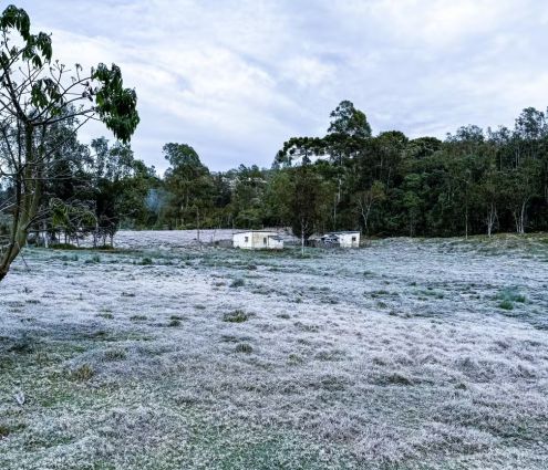 O Sul de Minas amanheceu com geada e termômetros abaixo de zero nesta segunda-feira (12). Segundo o Instituto Nacional de Meteorologia (Inmet), o distrito turístico Monte Verde (MG) registrou -1,4 °C, a menor temperatura do estado e do país. Além do frio intenso no distrito de Camanducaia, outras localidades da região também tiveram manhãs congelantes, como Maria da Fé que chegou aos -0,2 °C (foto) e Caldas, que atingiu os 0,1 °C. De acordo com o Inmet, a geada se forma quando o tempo está estável, com céu claro, sem vento e com queda da temperatura acentuada entre a madrugada e o início da manhã. Com esse tempo, muitos moradores aproveitam para registrar as paisagens e os cenários típicos de inverno que se formam. Confira as mínimas registradas no Sul de Minas nesta segunda-feira (12), segundo o Inmet: Monte Verde: -1,4 °C, Maria da Fé: -0,2 °C, Caldas: 0,1 °C, São Sebastião do Paraíso: 2,6 °C, Passos: 3,7 °C, Passa Quatro: 4,5 °C e Varginha: 5,0 °C. (Fonte: G1 / Foto: William Siqueira).
