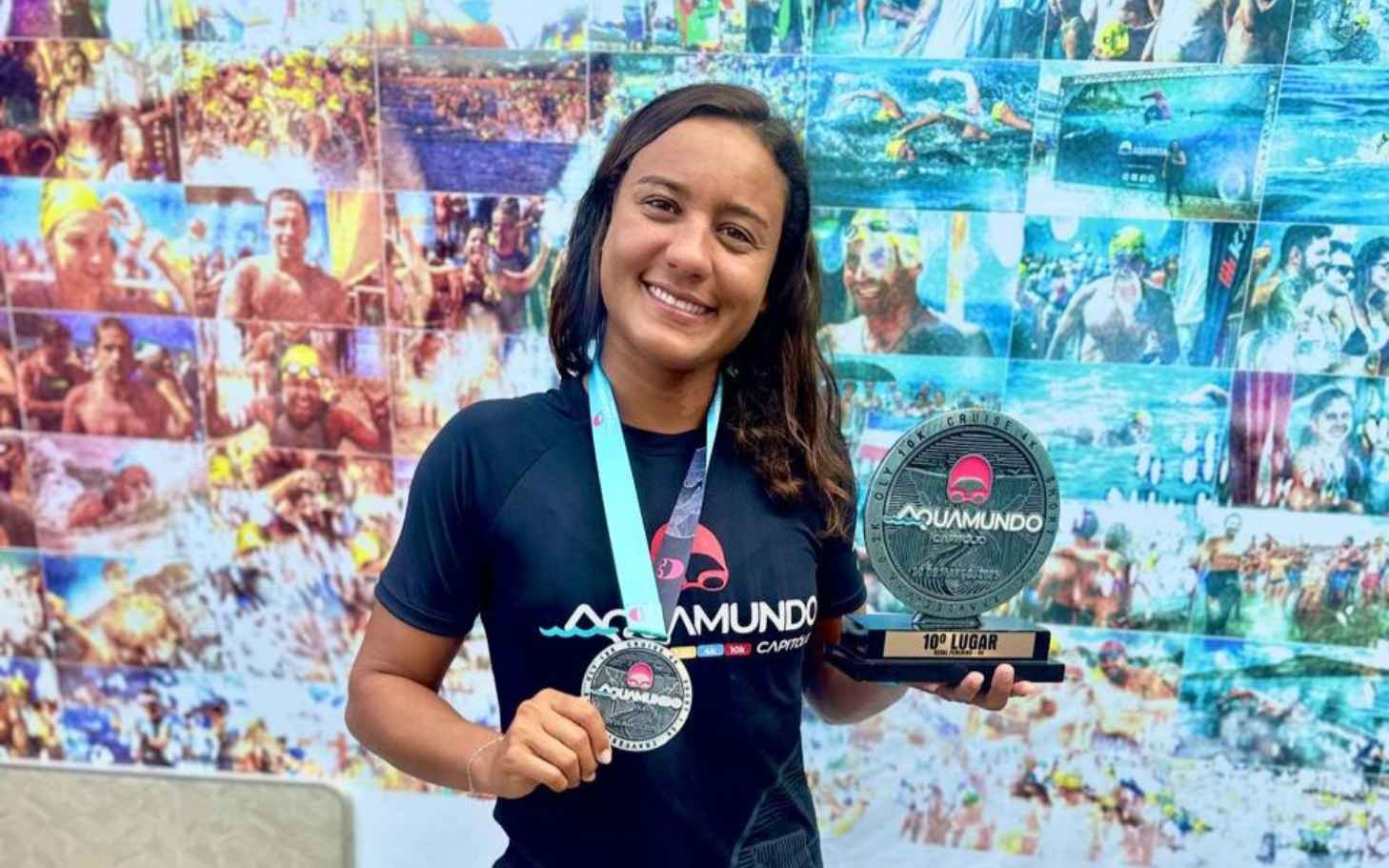 A nadadora trespontana Áddilla Caroline participou no sábado (29), do Aquamundo – um grande evento em águas abertas que reuniu um total de 1.386 atletas em Capitólio (MG). Addilla disputou a prova de 4 km, juntamente com 221 competidoras, ficando no Top 10 Geral, e trazendo para Três Pontas mais um troféu e uma medalha para sua vasta galeria de conquistas. “Foi minha primeira vez nadando essa distância de 4km, e a sensação foi incrível! Estar ao lado de tantos atletas, todos unidos pela paixão ao esporte, foi mais uma experiência gratificante e inspiradora. Cada prova é um novo aprendizado e mais uma oportunidade de superação. Participar do Aquamundo só reforçou minha motivação para continuar evoluindo e buscando novos desafios na natação. Estou ansiosa pela próxima”, declarou. (Fonte: Três Pontas Stúdio live).