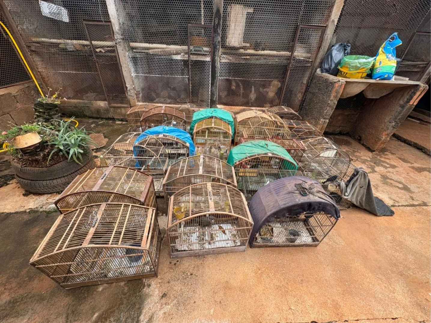 Após denúncia anônima, a Polícia Militar do Meio Ambiente de Varginha esteve em uma casa no bairro Santa Margarida, em Três Pontas, no dia 1o de maio, quando confirmou a criação irregular de pássaros silvestres. Ao todo, os policiais verificaram 81 aves dentro do imóvel, sendo 59 mantidas de forma irregular. Diante da situação, o idoso recebeu voz de prisão, mas não foi conduzido à Delegacia por conta da sua idade avançada e seu estado de saúde. As aves irregulares foram apreendidas, assim como as gaiolas e anilhas. Porém, ele foi multado em R$ 107.854,50 e recebeu uma advertência para regularizar a documentação das aves. (Correio Trespontano / Equipe Positiva / Foto: PM Meio Ambiente).