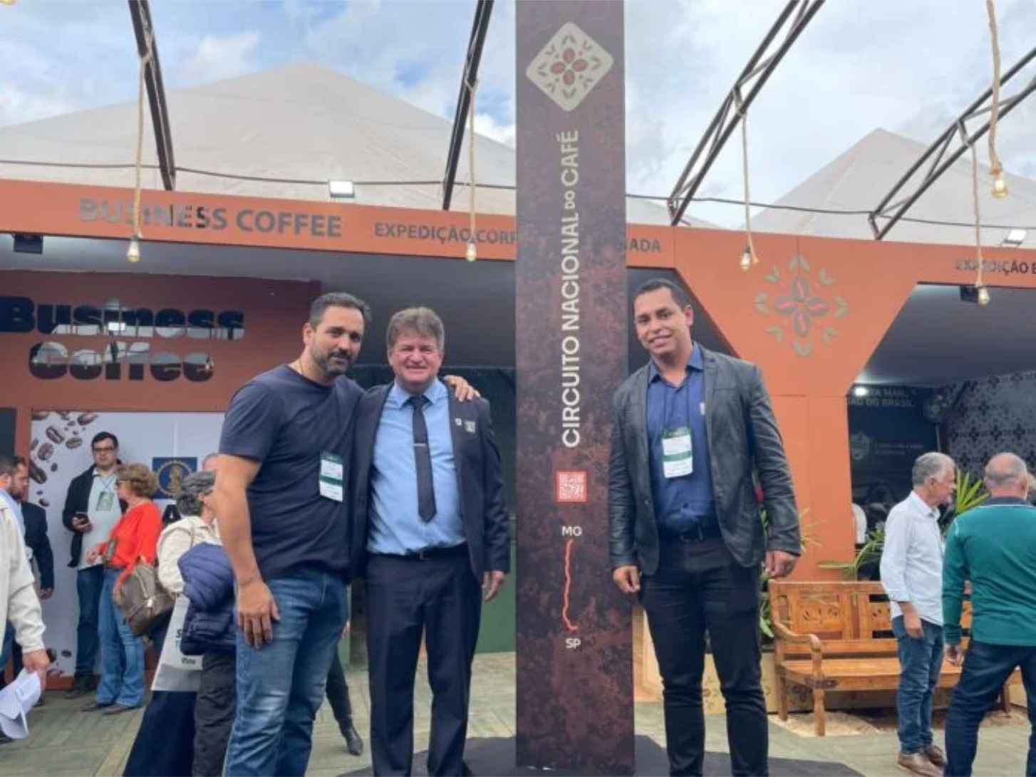 Durante a programação da Expocafé 2025, em Três Pontas (MG), foi lançado oficialmente nesta terça-feira (27) o Circuito Nacional do Café, um projeto que busca transformar a tradição cafeeira do Brasil em uma experiência turística e cultural de projeção nacional e internacional. Inicialmente o circuito reúne 51 municípios dos estados de Minas Gerais e São Paulo, todos reconhecidos pela forte ligação com a produção e história do café. Contempla todo o Alto Paranaíba, Sudoeste, Sul de Minas e as cidades do estado de São Paulo que fazem divisa com Minas, até chegar no Porto de Santos. O lançamento aconteceu em uma das tendas de eventos da feira e contou com a participação de autoridades e representantes dos setores do agronegócio, turismo e cultura. O deputado federal Diego Andrade, autor do projeto, destacou que, durante todo o século 19 e parte do século 20, a rota era o caminho pelo qual os carregamentos de café mineiro passavam com destino ao litoral. A valorização da Rota do Café como monumento nacional representa um passo importante na preservação da história e cultura cafeeira do Brasil, além de impulsionar o turismo e o desenvolvimento regional nas cidades envolvidas. Edgar Bessa, um dos idealizadores do projeto, contou que o marco zero da rota será instalado no Porto Seco, em Três Pontas. A partir de junho, será disponibilizado um site oficial para o cadastro de novos municípios interessados em integrar o circuito. “A princípio vamos começar a pontuar os marcos, o marco zero vai ser no Porto Seco. A partir daí, vamos colocar em todas as 51 cidades, até poder cadastrar todas as outras que estão faltando, que contemplam toda essa região, para poder enfim começar o Circuito Nacional do Café através das rotas”, explicou. Na foto, o deputado federal Diego Andrade, o prefeito Luisinho e o vice Maycon Machado no modelo de monumento que será colocado nos 51 municípios da Rota do Café. (Fonte: Equipe Positiva / Mariana Tiso / G1).