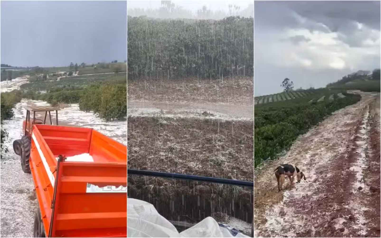 A forte chuva de granizo que caiu na tarde de sexta-feira (25) causou estragos em propriedades rurais no Sul de Minas. Em Monte Santo de Minas (MG), dezenas de lavouras de café foram atingidas (foto). O temporal ocorreu em meio ao período de colheita e pegou produtores de surpresa. De acordo com a Defesa Civil Municipal, a tempestade começou por volta das 13h45 e durou cerca de 40 minutos, atingindo cerca de 60% das propriedades cafeeiras localizadas em Monte Santo de Minas. Em algumas áreas, as lavouras ficaram totalmente desfolhadas. Em outras, embora as folhas tenham resistido, elas foram bastante danificadas pelas pedras de gelo. Produtores relataram perdas significativas, com até 80% do cafezal afetado. Apesar de cerca de 95% da colheita deste ano já ter sido realizada, a principal preocupação agora é com a safra do próximo ano. Com as plantas danificadas, o desenvolvimento dos novos grãos pode ser comprometido. Além de Monte Santo de Minas, o granizo foi registrado em pelo menos 17 cidades do Sul de Minas, incluindo Andradas, Muzambinho, Monte Belo, Cambuí, Ouro Fino e Senador Amaral. Em várias dessas localidades, as pedras de gelo cobriram ruas, lavouras e telhados, causando sustos e prejuízos pontuais. Apesar dos estragos materiais em plantações e propriedades rurais, não houve registro de vítimas ou danos graves. A Defesa Civil segue monitorando as áreas afetadas. (Fonte: G1 / Foto: Defesa Civil/João Moraes).
