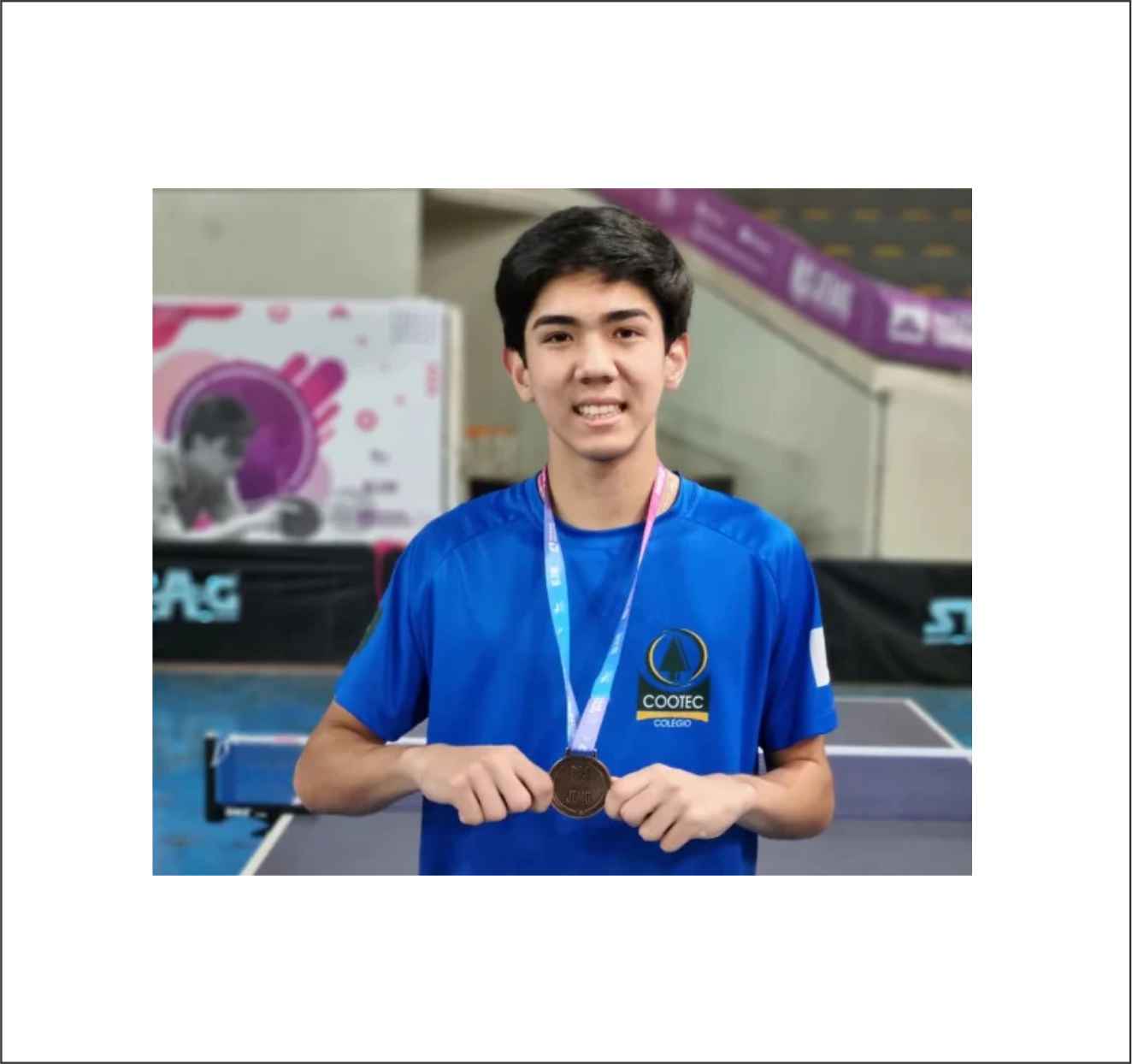 O estudante-atleta Henry Rikio Sato, do Colégio Cootec de Três Pontas, conquistou a 3ª colocação no Módulo II (estudantes-atletas de 15 a 17 anos) na modalidade de tênis de mesa, durante a fase estadual dos Jogos Escolares de Minas Gerais (JEMG), realizada entre os dias 11 e 16 de agosto. Com o resultado, ele garantiu a medalha de bronze em sua quarta participação na competição – e em todas as edições em que esteve presente subiu ao pódio. A trajetória de Henry no JEMG começou em 2022, quando foi campeão do Módulo I (12 a 14 anos) e conquistou a medalha de ouro. No ano seguinte, já no Módulo II, ficou em terceiro lugar, repetindo a medalha de bronze. Em 2024, o trespontano se consagrou novamente campeão, desta vez no Módulo II, conquistando sua segunda medalha de ouro. Agora, em 2025, volta ao pódio com mais uma medalha de bronze, somando ao todo quatro medalhas em quatro participações consecutivas no JEMG. (Foto: Divulgação).
