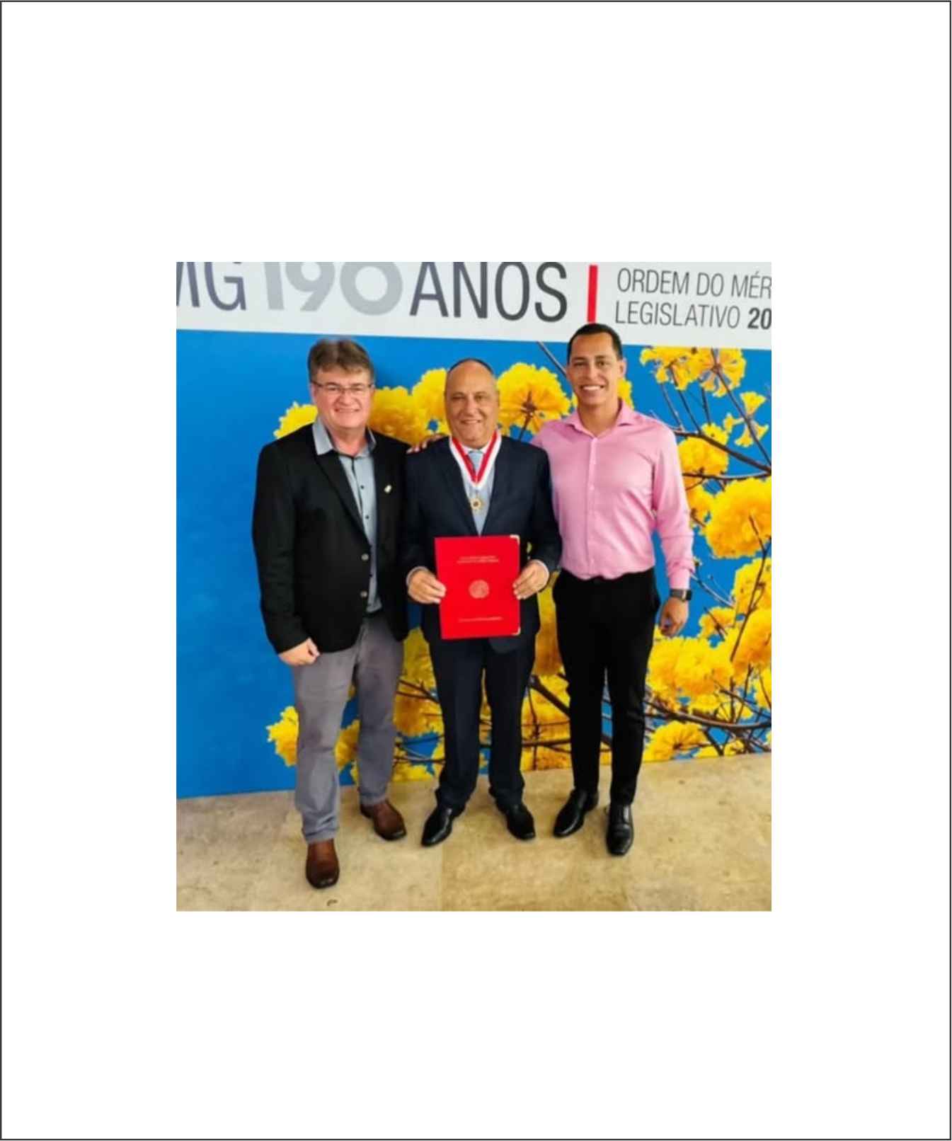 Na manhã desta terça-feira (16), o ex-prefeito de Três Pontas, Marcelo Chaves Garcia, foi homenageado com a Medalha do Mérito Legislativo, por indicação do deputado estadual Mário Henrique Caixa (PV), em solenidade realizada na Assembleia Legislativa de Minas Gerais (ALMG), em Belo Horizonte. A comenda, uma das mais importantes concedidas pelo Legislativo mineiro, reconhece personalidades e instituições que prestaram relevantes serviços à sociedade, contribuindo para o desenvolvimento do Estado. Marcelo Chaves foi prefeito de Três Pontas entre 2018 e 2024 e teve atuação marcada por iniciativas voltadas à saúde, educação, assistência social e infraestrutura urbana. Durante seu mandato, destacou-se também pela busca de recursos junto ao governo estadual e federal, além de projetos voltados à melhoria da qualidade de vida da população. A solenidade contou com a presença de autoridades políticas, lideranças regionais e convidados de diversas cidades do Sul de Minas. A Medalha do Mérito Legislativo é entregue anualmente pela ALMG a personalidades de destaque nos mais variados setores da sociedade mineira. Na foto, com o prefeito Luisinho e o vice-prefeito Maycon Machado.