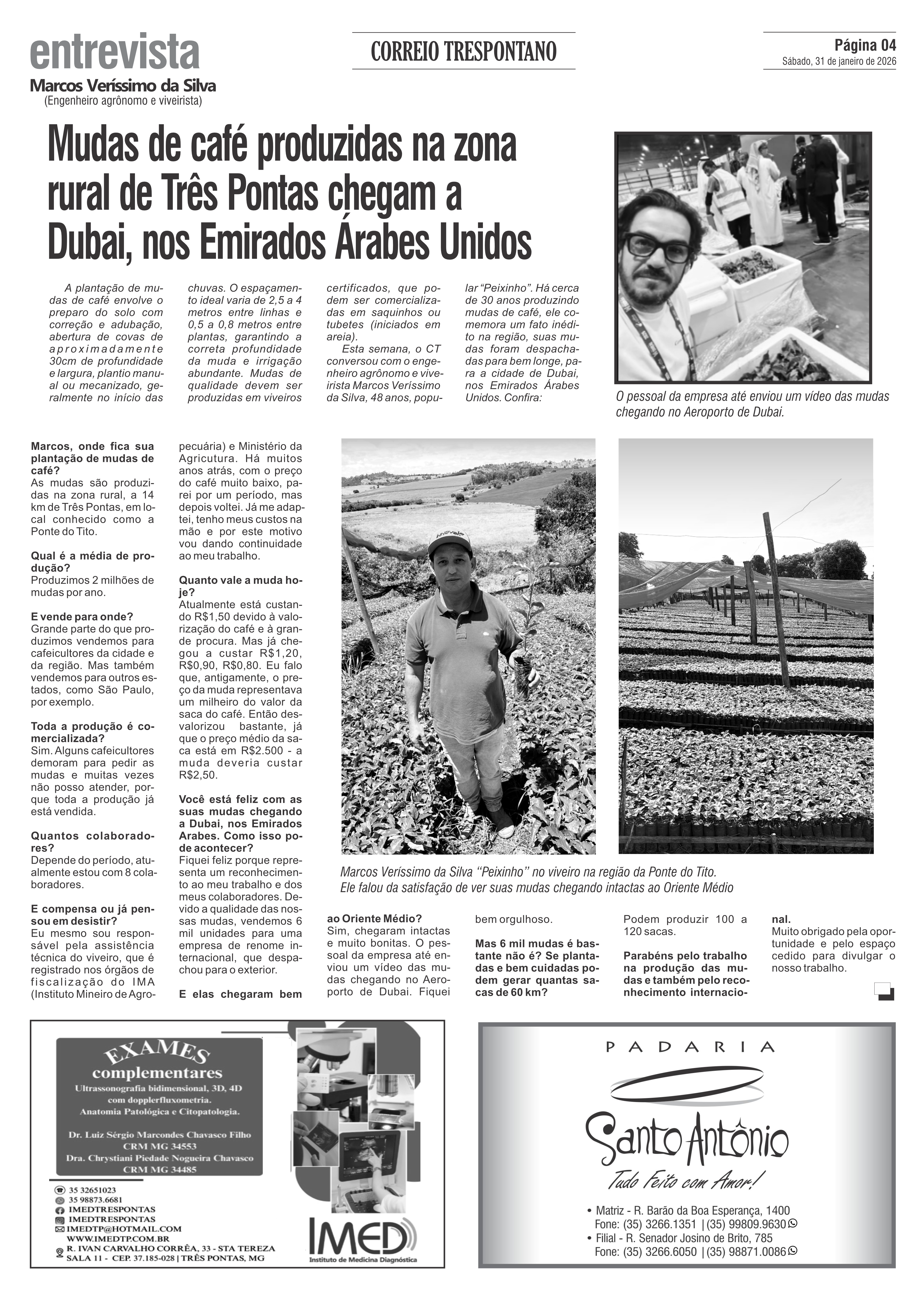 Mudas de café produzidas em Três Pontas chegam a Dubai, nos Emirados Arabes Unidos